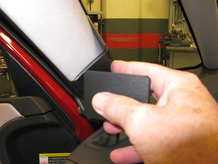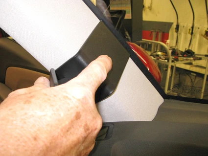 Press the ProClip upward/forward so the angled upper edge hooks around the A-post.