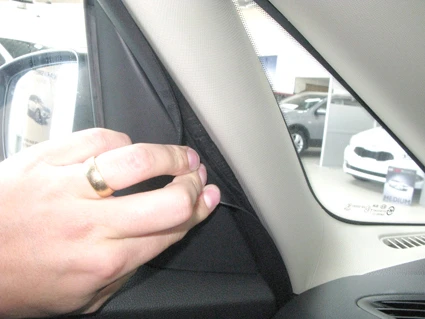 Use the enclosed alcohol pad to clean the area where the ProClip is to be installed. Pull out the rubber sealent on the A-post slightly. Remove the adhesive tape covers on the ProClip.