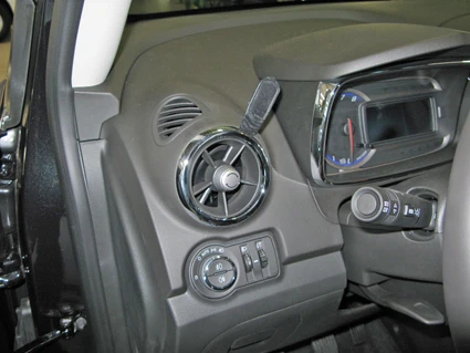 Press the gap opener into lower part of the gap between the frame surrounding the air vent and the dashboard. Pull the lower part of the ProClip downward and hook the angled edge into the gap between the gap opener. Remove the gap opener.