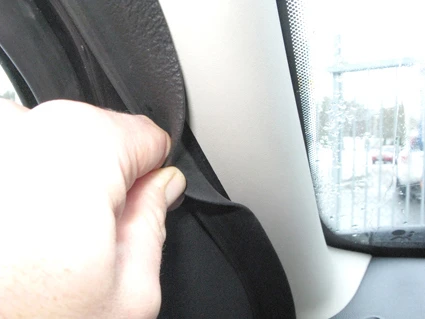 Use the enclosed alcohol pad to clean the area where the ProClip is to be installed. Pull out the rubber sealent on the A-post slightly. Remove the adhesive tape covers on the ProClip.