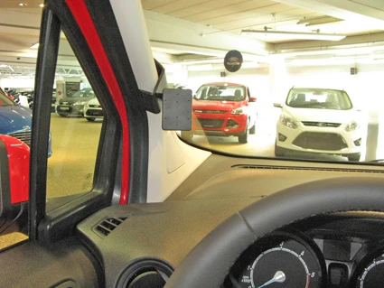 Press the ProClip upward/forward so the angled upper edge hooks around the A-post.