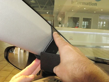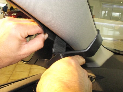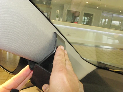Press the ProClip upward/forward so the angled upper edge hooks around the A-post.