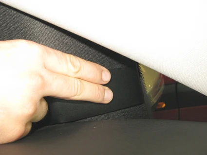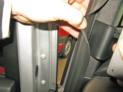 Press the ProClip forward so the angled upper edge hooks into the gap between the windshield and the A-post.