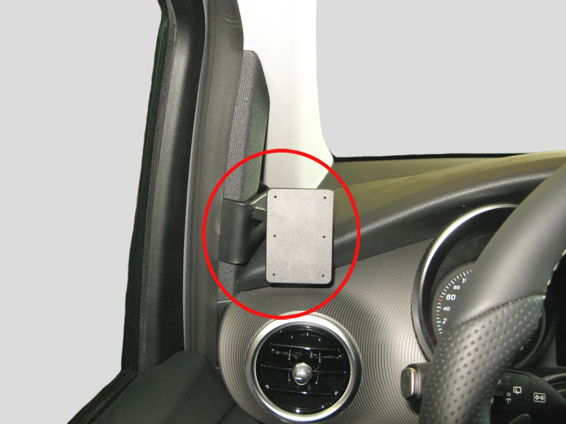 The ProClip is easy to install. The bracket simply snaps into place in gaps in the dashboard, you do not need to drill holes, not use special tools or not dismantle the dashboard. Made in black ABS plastic. Comes with detailed installation instructions. The mounting plate is equipped with predrilled holes which make the installation of equipment on the ProClip easier. The holes suit all Brodit holders and other products with standard holes, the hole pattern constists of one set of AMPS-holes as well as two sets of double-holes placed in different height.