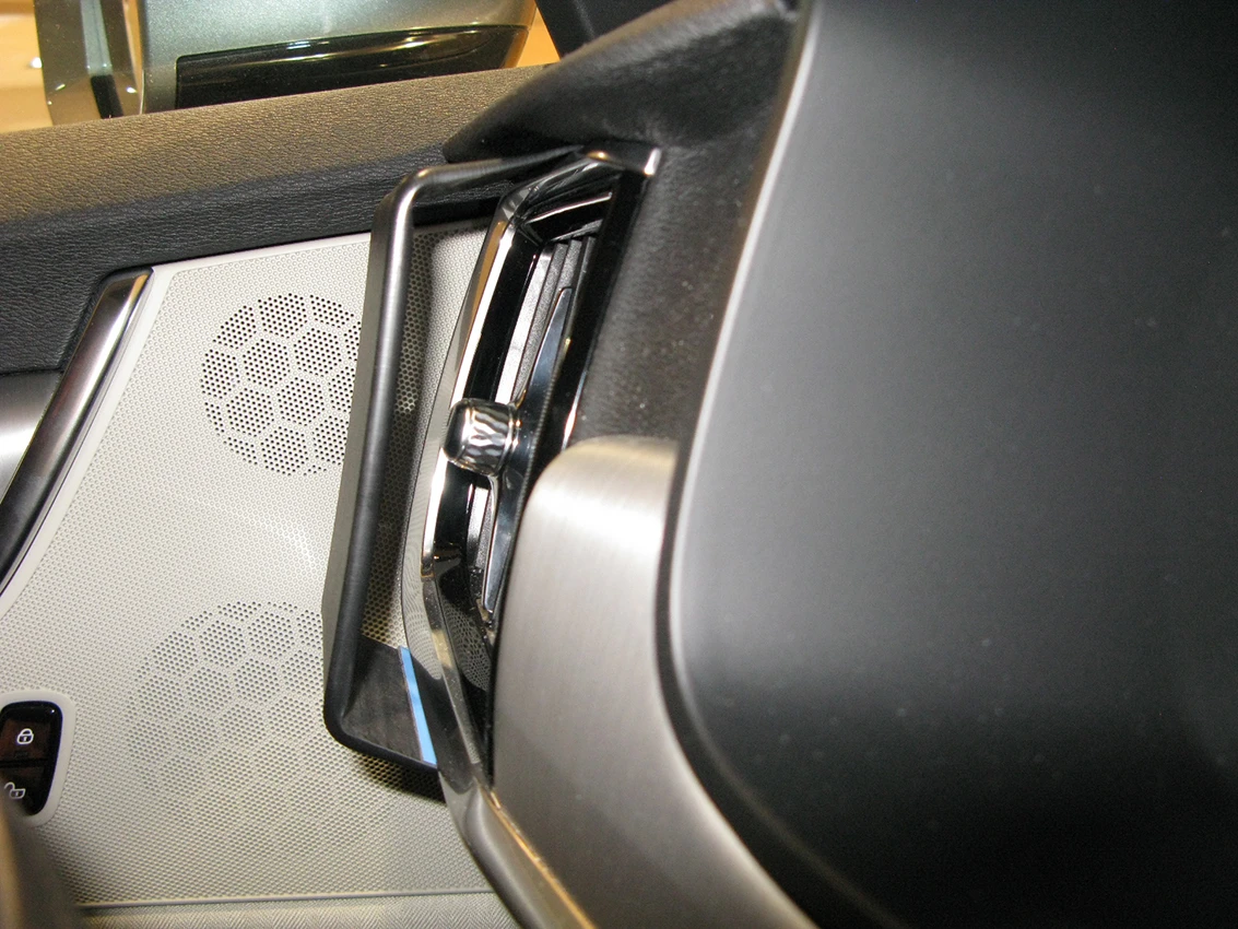Press the lower angled edge under the frame surrounding the air vent.