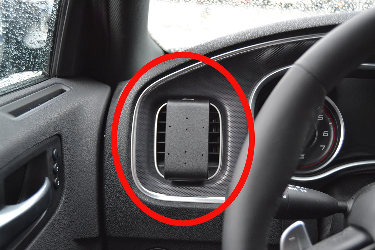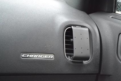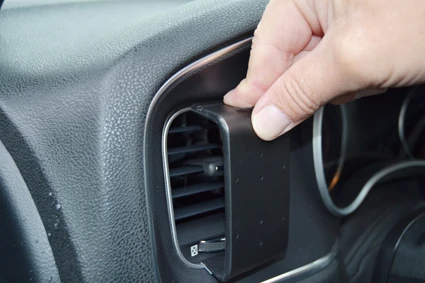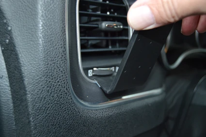 Press the upper part of the ProClip downward so it flexes. Hook the notched edge on the upper part of the ProClip under the frame surrounding the air vent.