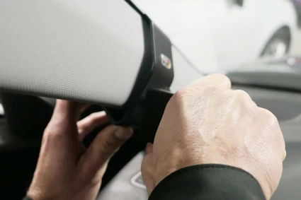Press the ProClip upward/forward so the angled upper edge hooks around the A-post.