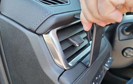 Press the angled edge on the lower part of the ProClip into the gap between the frame surrounding the air vent and the trim.