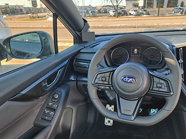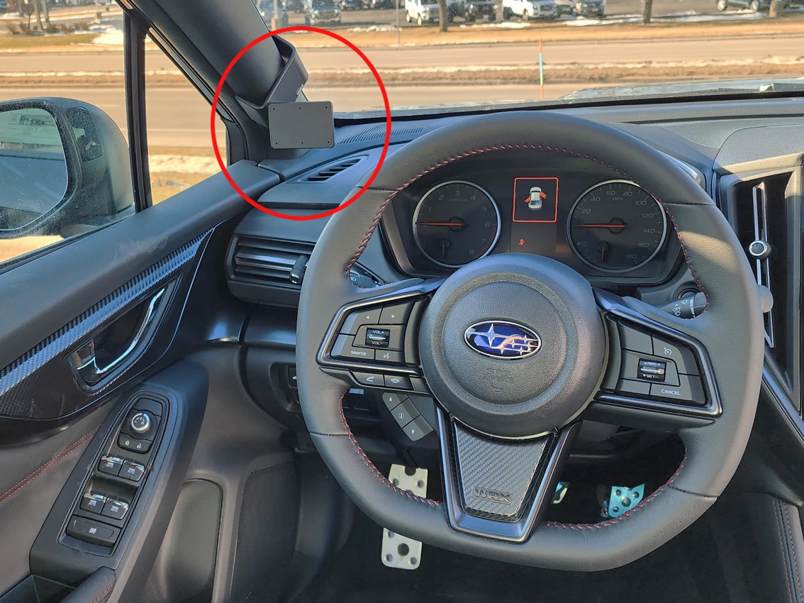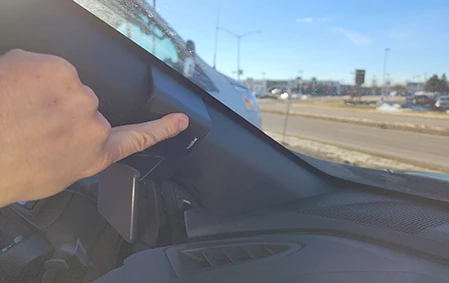 Press down on top of the mount so the upper angled edge hooks around the A-pillar securely.