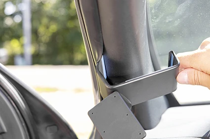 The ProClip is car specific, it is customized for each car model and has a perfect fit. The ProClip offers a firm mounting platform and is available in multiple positions for most vehicles. Discreet design that blends in well with the interior. Safe, neat and convenient!