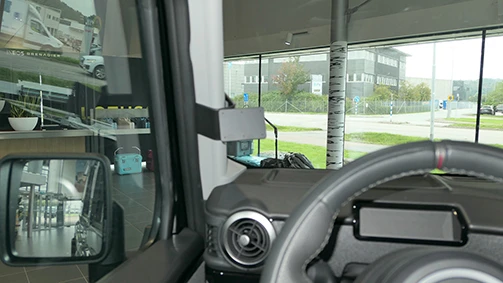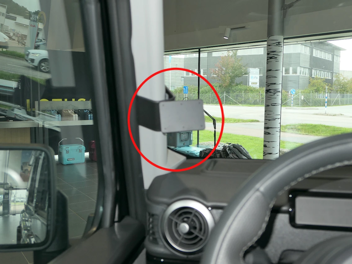 Press the mount forward/upward so the angled upper edge hooks around the A-post.