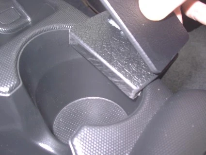 Peel off the adhesive tape covers on the ProClip. Hook the left part of the ProClip over the edge of the cup holder.