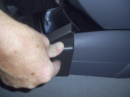 Press downwards on the right side of the ProClip so the angled edge hooks under the console.