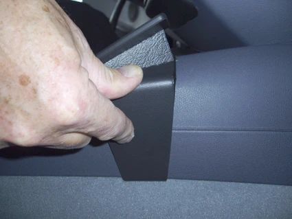 Peel off the adhesive tape covers on the ProClip. Place the left end of the ProClip over the edge of the console.
