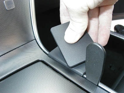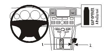 Press the thin end of the enclosed gap opener into the gap between the center console panel frame and the console edge, to widen the gap. Peel off the cover of adhesive tape on the ProClip.