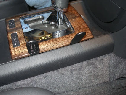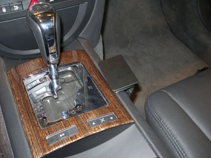 Press the thin end of the enclosed gap openers into the gap between the panel surrounding the gear shift and the console edge, to widen the gap. Peel off the adhesive tape covers on the ProClip.