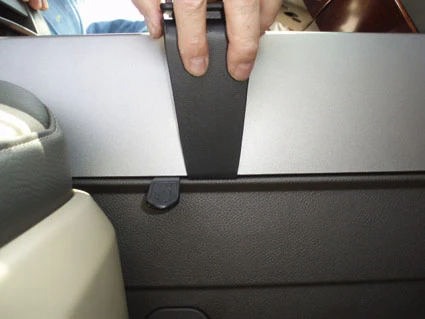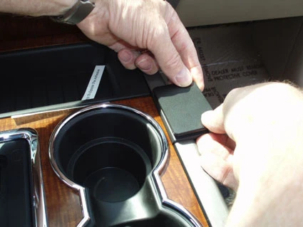 Press the ProClip towards the cup holder so the angled edge on the left side of the ProClip goes into the gap between the center console panel frame and the console edge. Press until you see or hear/feel it snaps into place