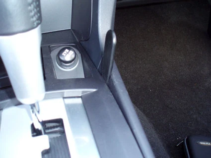 Press the thin end of the enclosed gap opener into the gap between the console edge and the panel surrounding the gear shift, to widen it. Peel off the cover of adhesive tape on the ProClip.