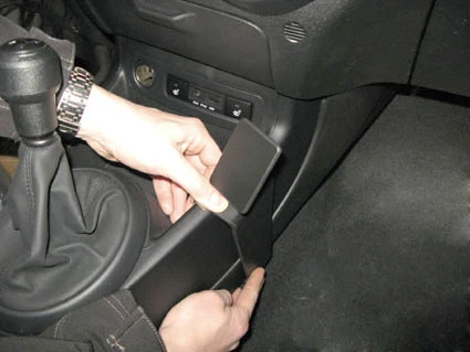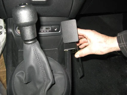 Press the ProClip toward the console so the angled edge hooks properly in place and the adhesive tape attaches.