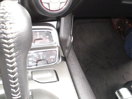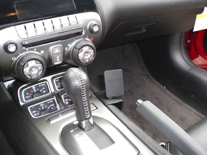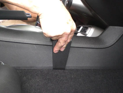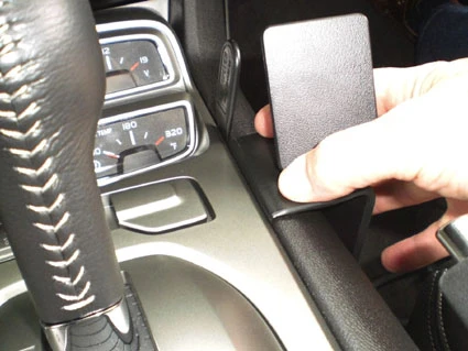 Press firmly down on the right side of the ProClip so the angled edge hooks around the console sidewall edge by the carpet.