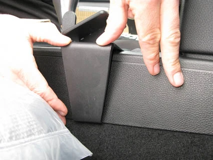 Press downward on the right side of the ProClip so the lower angled edge hooks under the console sidewall. Pull out the gap opener.