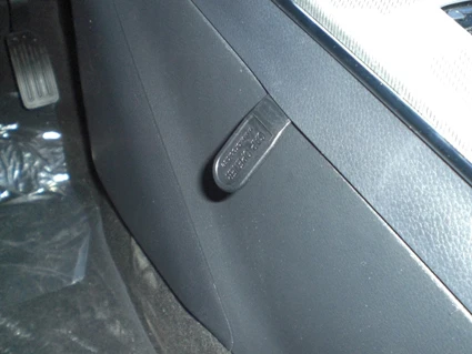 Press the thin end of the enclosed gap opener upward into the seam/gap in the console sidewall, to widen the gap. Use the enclosed alcohol pad to clean the area where the ProClip is to be installed. Peel off the adhesive tape cover on the ProClip.