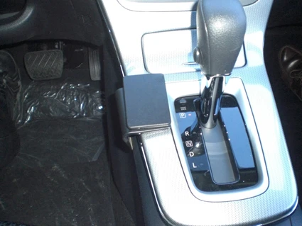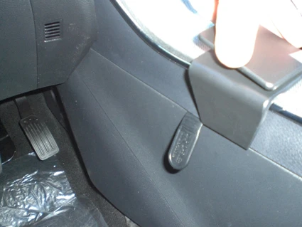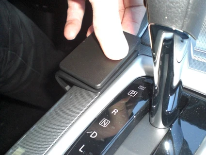Press the angled edge on the right side of the ProClip into the gap between the center console panel and the panel surrounding the gear shift.