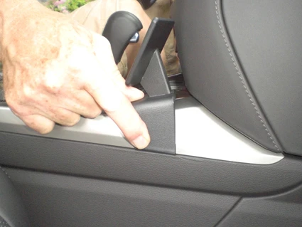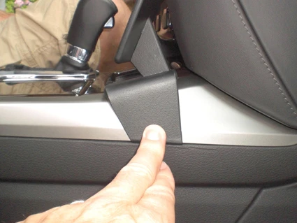 Press down firmly on the right side of the ProClip si the angled edge flexes downward and hooks around the lower console sidewall edge.