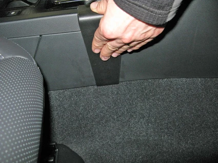 Use the enclosed alcohol pad to clean the area where the ProClip is to be installed. Remove the adhesive tape cover on the ProClip. Place the left side of the ProClip over the console edge.