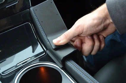 Press the right side of the ProClip downward so the angled right edge hooks around the edge of the console sidewall.