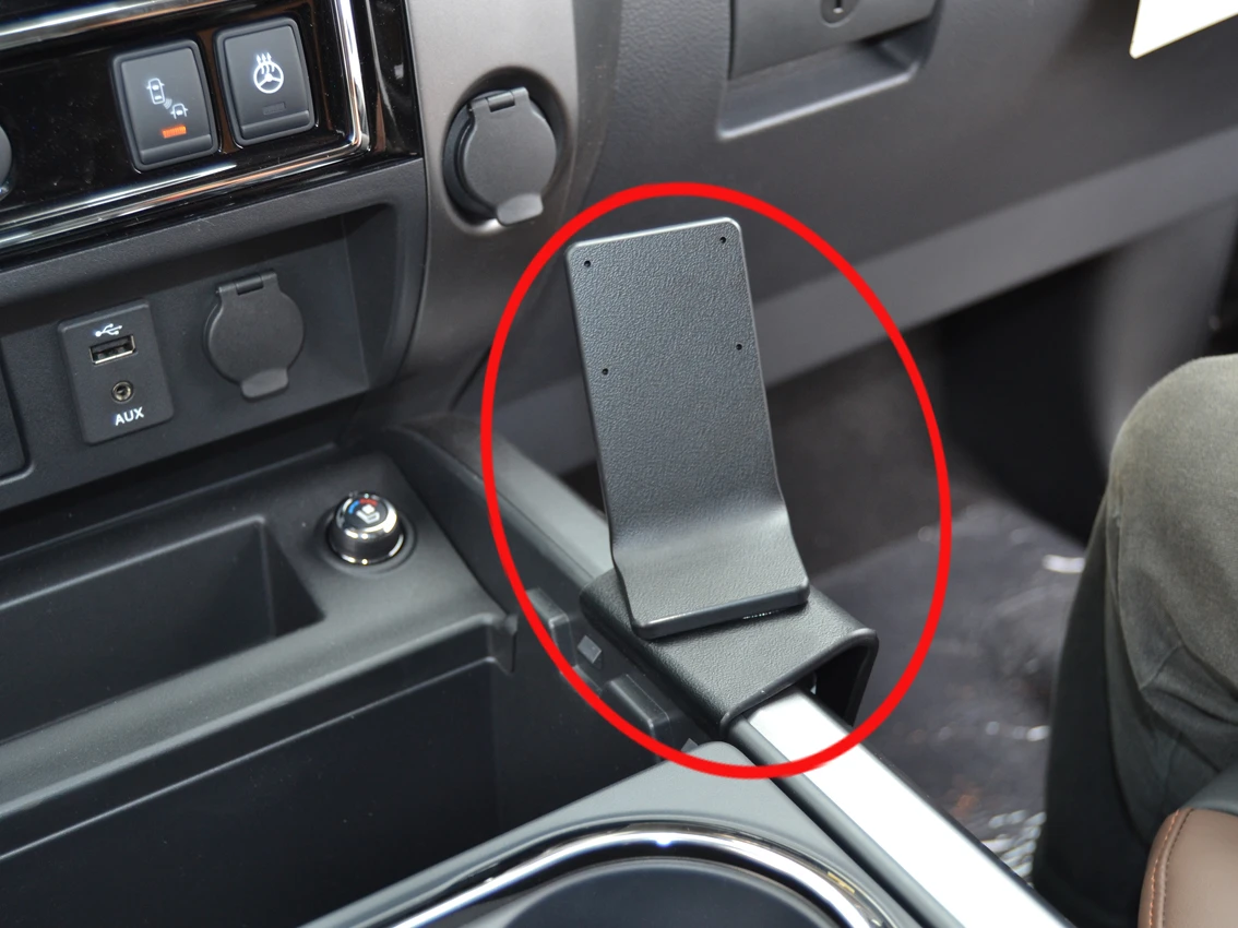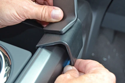 Flip/Press the ProClip downward so the angled lower edge hooks under the lower edge of the right side of the console side panel.