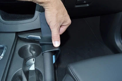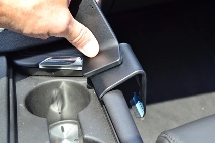 Flip/Press the ProClip downward so the angled lower edge hooks behind the lower edge of the right side of the console side panel.