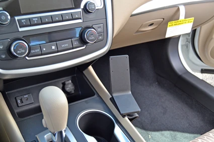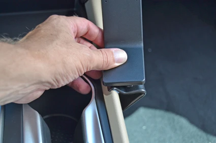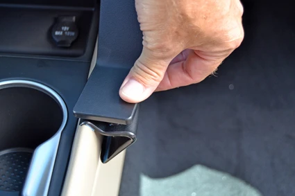 Press downward on the right side of the ProClip until the angled right edge hooks behind the lower edge of the right side of the console side panel.