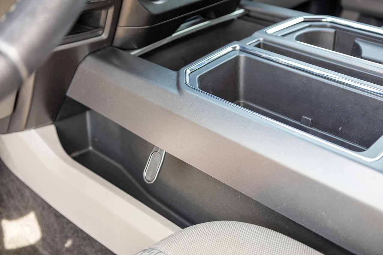 Press the thin end of the enclosed gap opener into the seam under the console trim, to widen the gap. Use the enclosed alcohol pad to clean the area where the mount will be installed. Peel off the adhesive tape cover.
