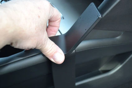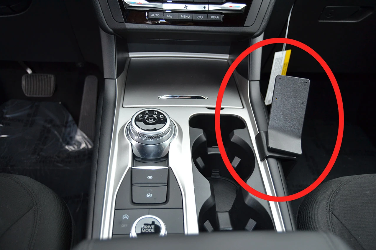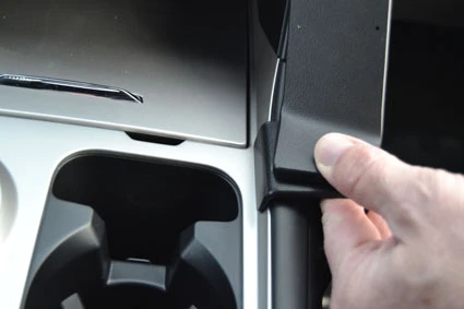 Press down on the right side of the ProClip and hook the lower edge under the center console side wall.