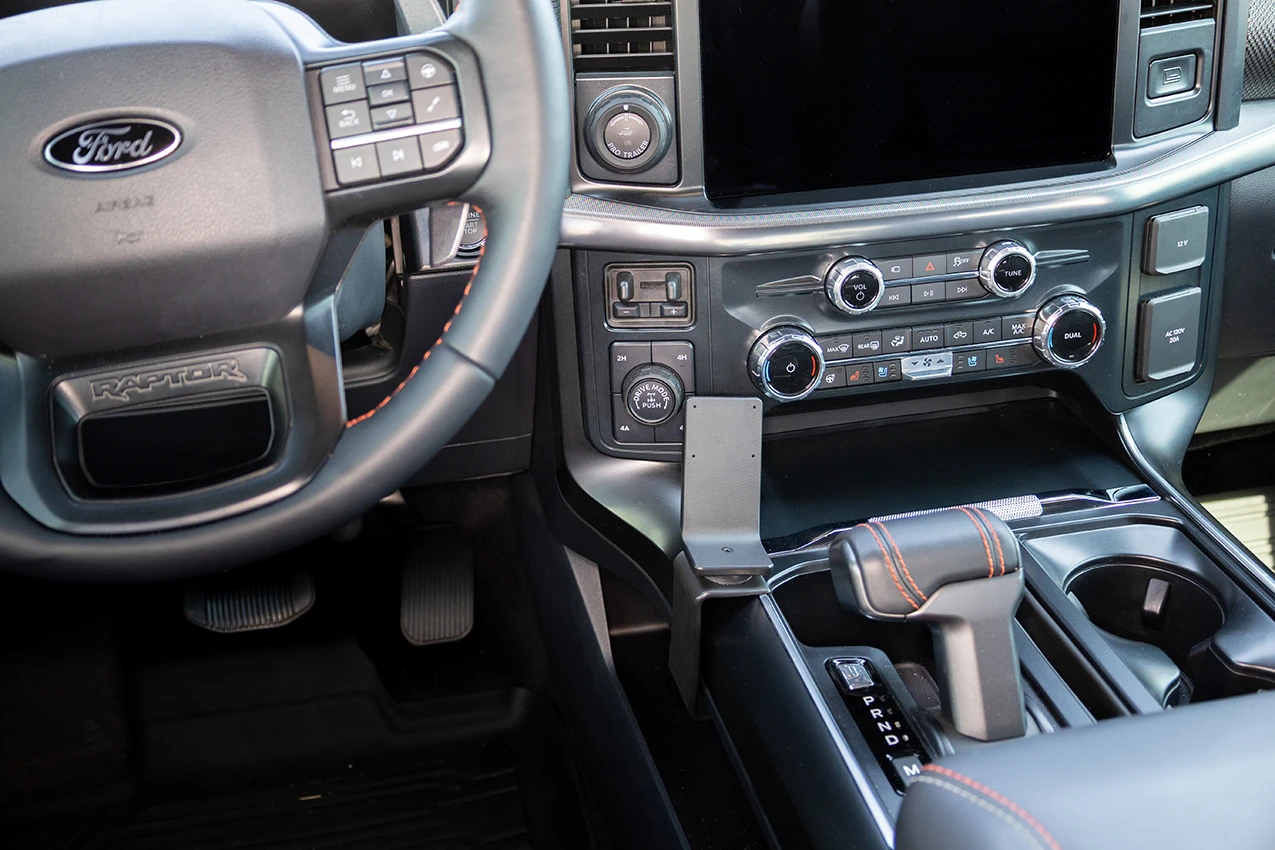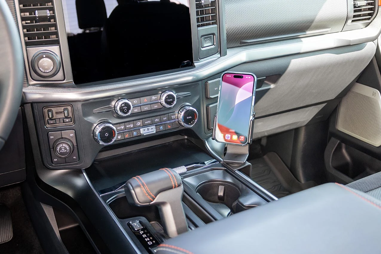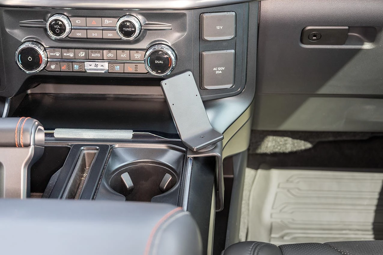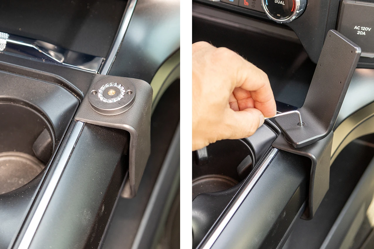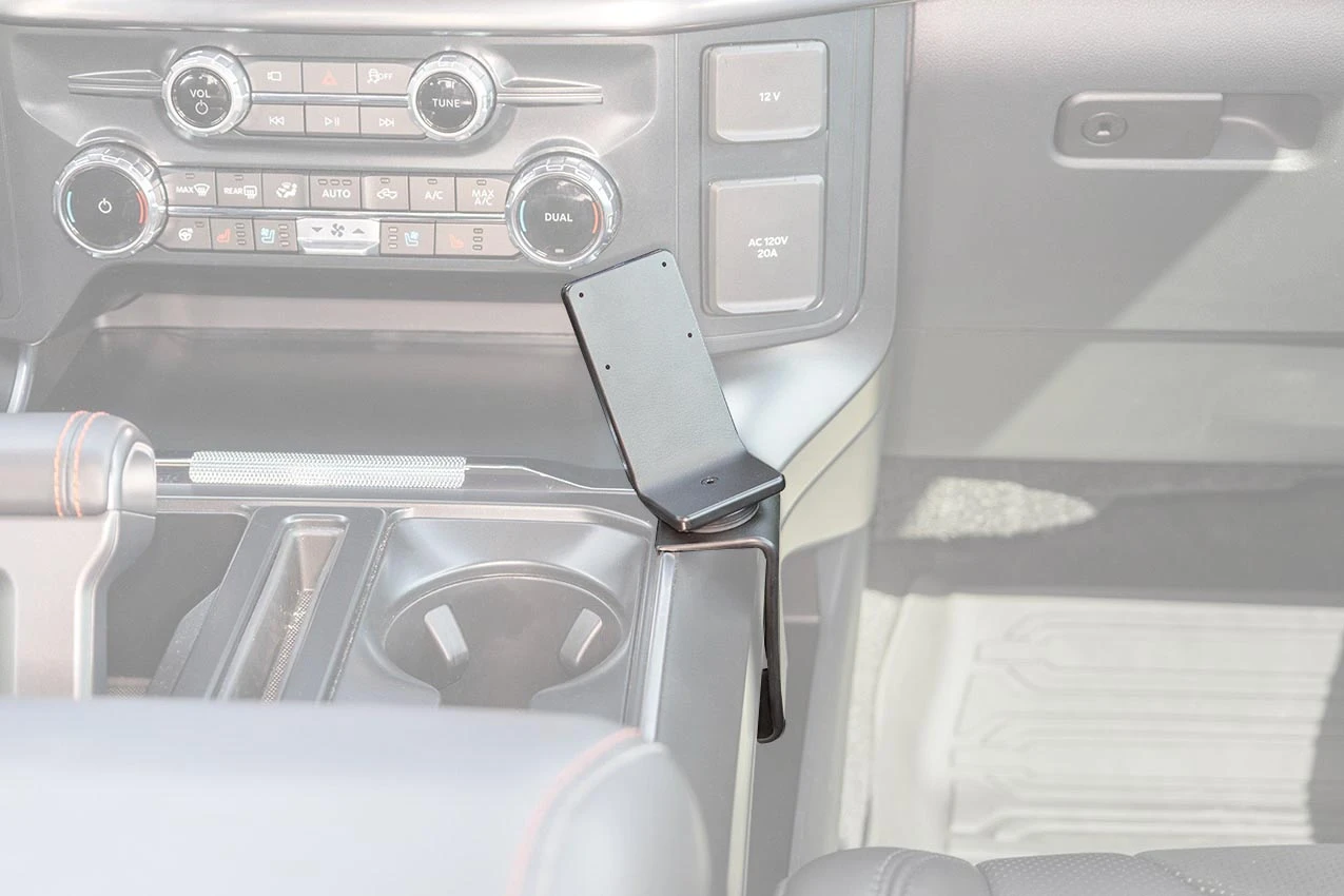 Hook the angled edge on the upper part of the ProClip over the console top. There is a slim piece of chrome that the ProClip should rest on next to the cup holder.