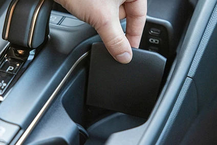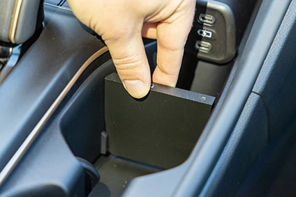Use the enclosed alcohol pad to clean the area where the mount will be installed. Peel off the adhesive tape cover. Remove the devider by the cup holders.