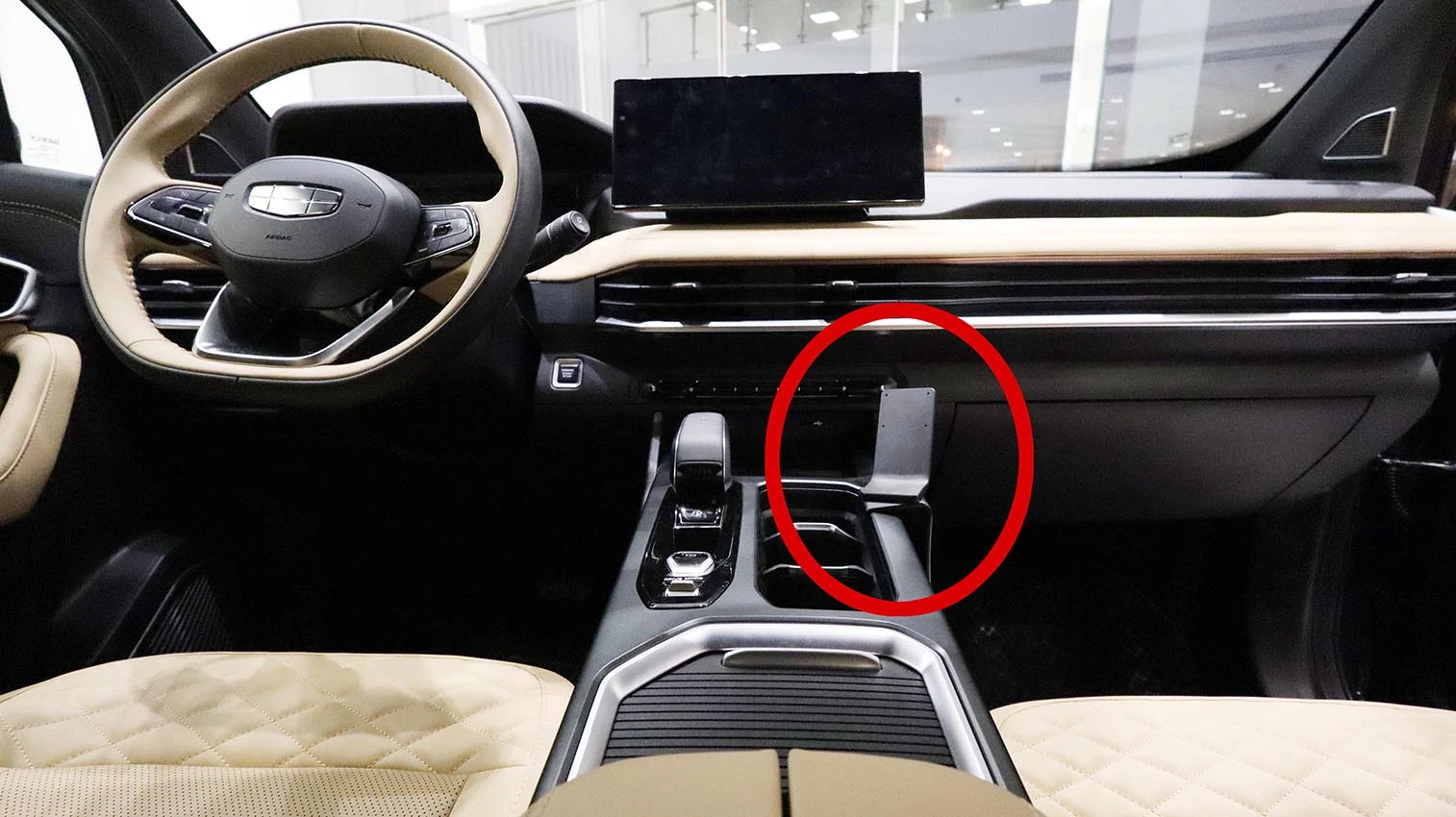 Place the mount over the center console frame. Hook the left edge onto the frame.