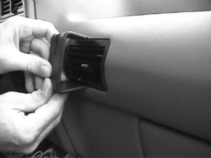 Press the grooved edge on the lower part of the ProClip into the gap between the padded part of the dashboard and the air vent frame. Press until you see or hear/feel it snaps into place.