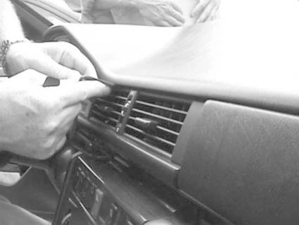 Press the ProClip upwards and forward so the grooved edge snaps into the gap between the air vent frame and the padded dashboard. Press until you see or hear/feel it snaps into place.