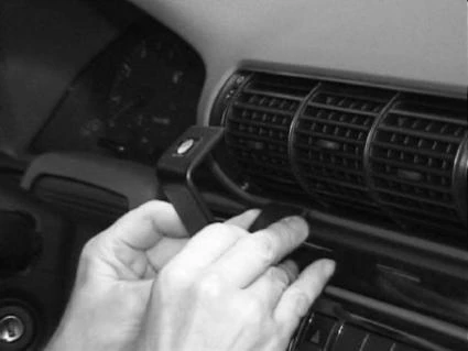 Press the grooved edge on the lower part of the ProClip into the gap between the padded part of the dashboard and the air vent frame. Press until you see or hear/feel it snaps into place.