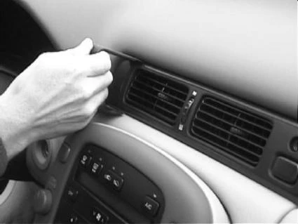 Press the grooved edge on the upper part of the ProClip ino the gap between the air vent panel frame and the padded dashboard. Press until you see or hear/feel it snaps into place.