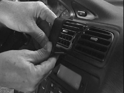 Hook the upper part of the ProClip, with angle, into the gap above the air vent at pos. 2.