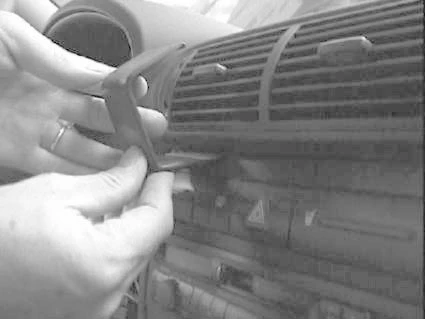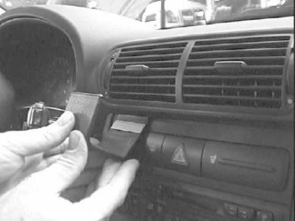 Peel off the adhesive tape covers on the ProClip. Press the angled edge on the lower part of the ProClip into the gap between the frame surrounding the air vent and the control panel