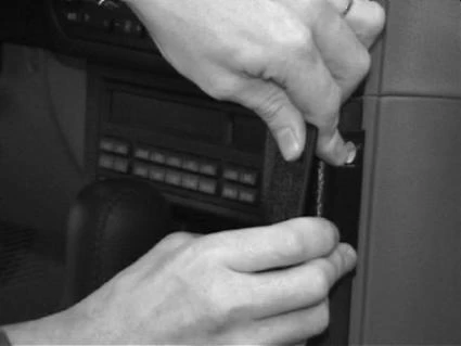 Place the ProClip over the center dash console frame, next to the climate control, and press/place the angled edge into the gap between the panel frame and the center dash console wall.