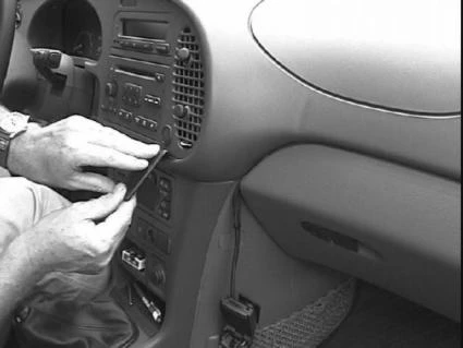Press the angled edge on the upper part of the ProClip into the gap between the panel frame and the padded dashboard ledge.