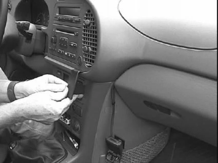 Press forward on the lower part of the ProClip so the grooved edge on vertical part of the ProClip goes into the gap between the panel surrounding the climat control and the center console. Press until you see or hear/feel it snaps into place.