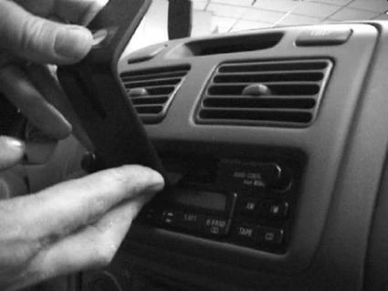 Press the curved edge on the lower part of ProClip into the gap between the stereo and the surrounding panel frame.