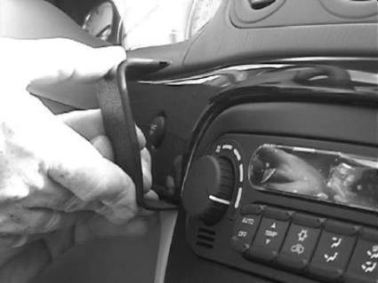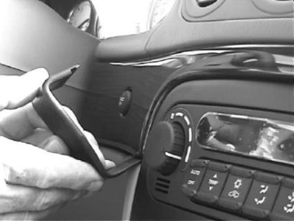 Press the upper part of the ProClip into the gap between the panel frame and the padded dashboard so the grooved edge snaps over the edge of the panel frame.