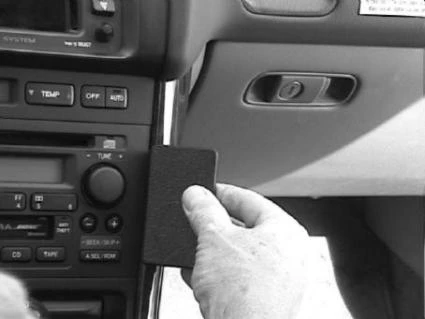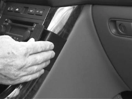 Press the left side of the ProClip into the gap between the stereo and the wood grain console edge.